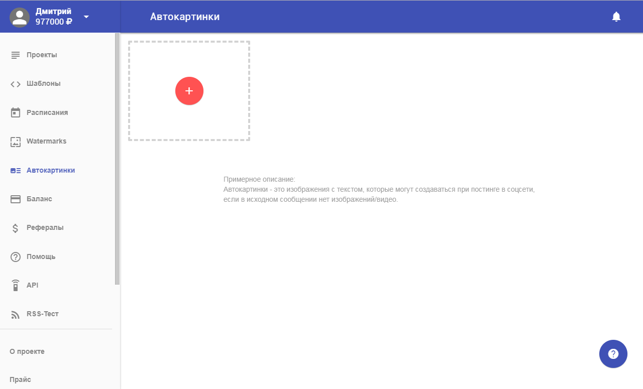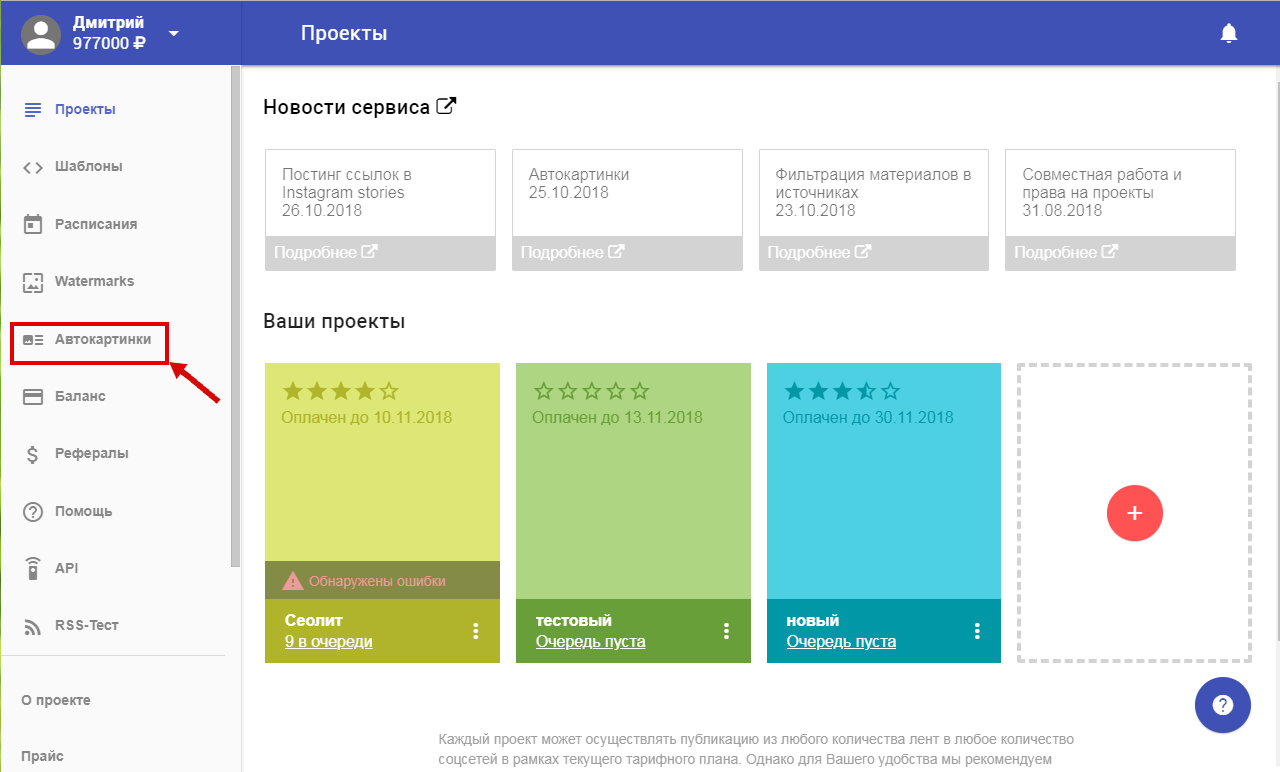 1. В меню слева можно заметить новый пункт "Автокартинки".