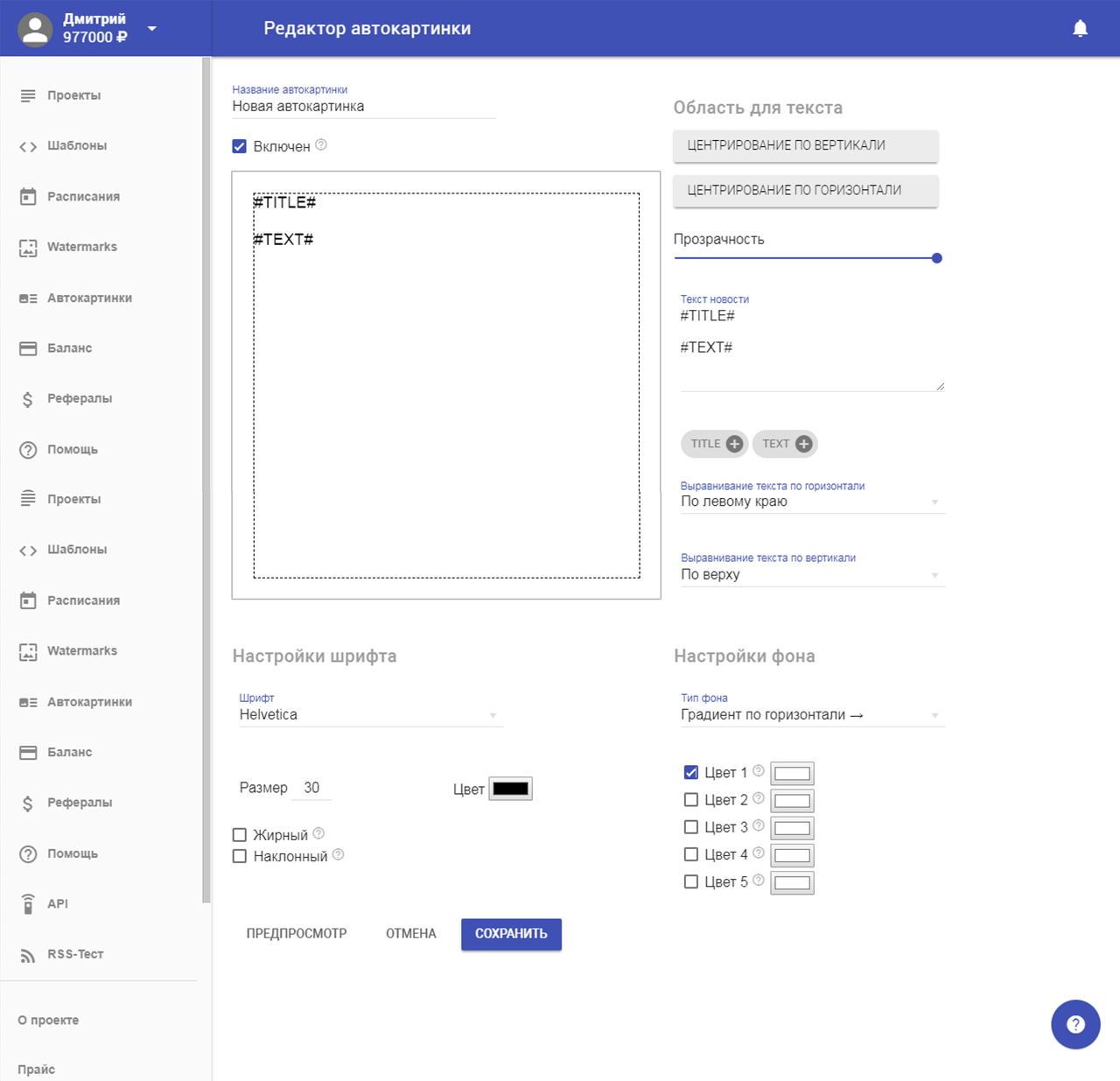 Перед тем как сохранить, можно нажать на кнопку "Предпросмотр", чтобы увидеть как оформлена автокартинка, далее нажимаем "Сохранить".