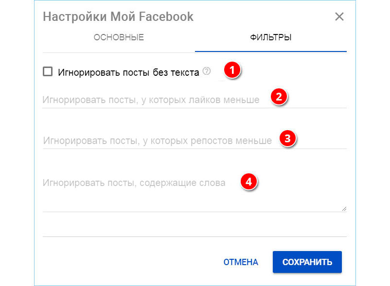 1. Этот чекбокс позволит вам игнорировать публикации, в которых нет текста.