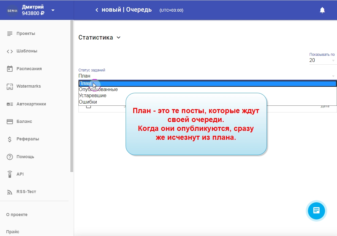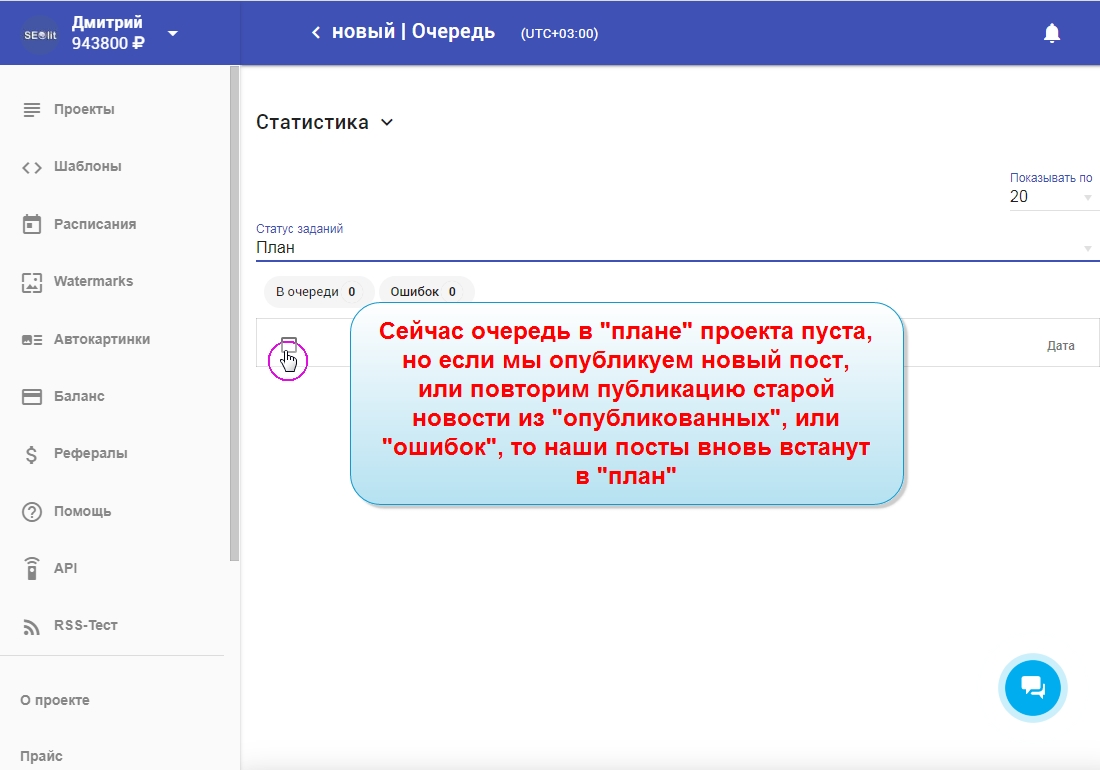 10. "План" - это и есть очередь запланированных публикаций. Если она пуста, значит все запланированные публикации уже были обработаны.