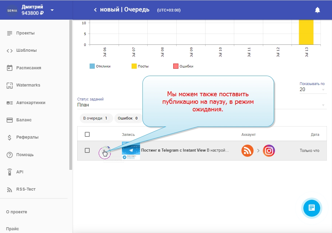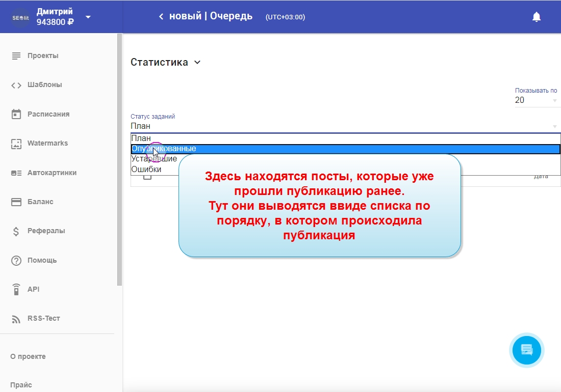 В этой инструкции мы покажем как работать с очередью публикаций постов.