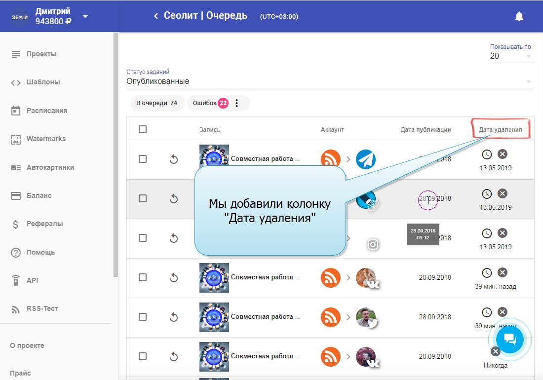 23. На сервисе появилась возможность удалять посты из соцсети через историю публикации вручную