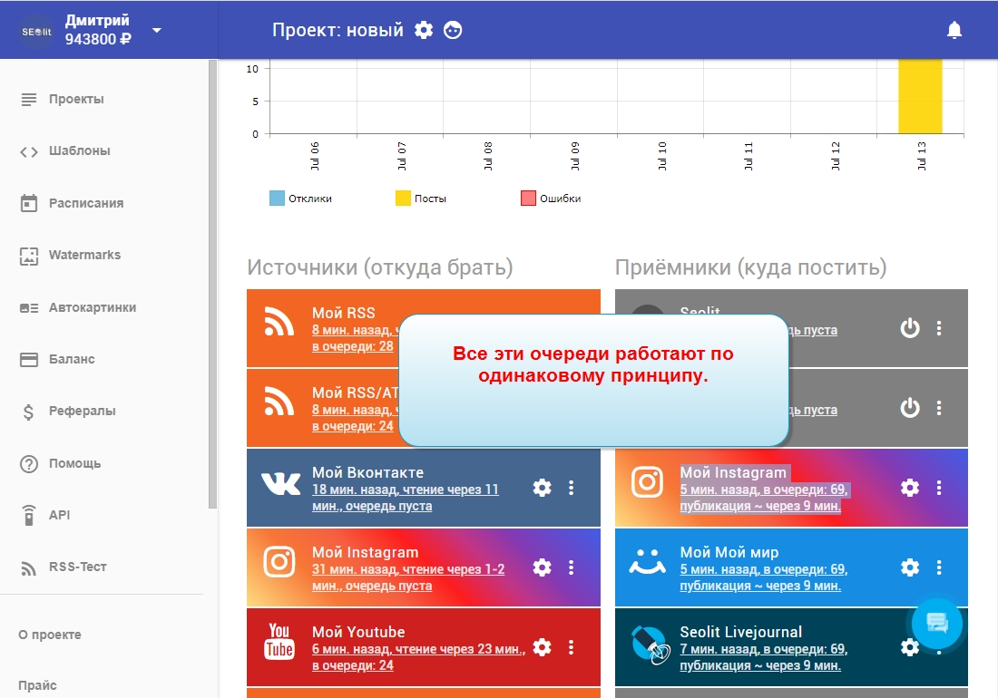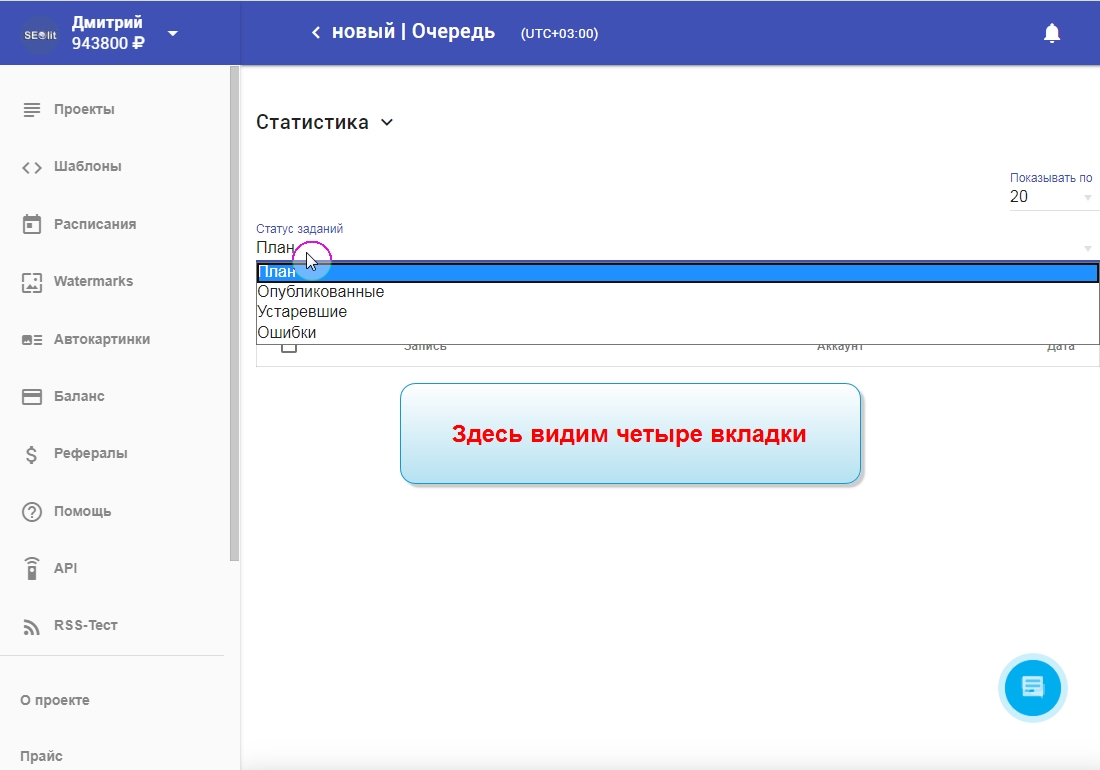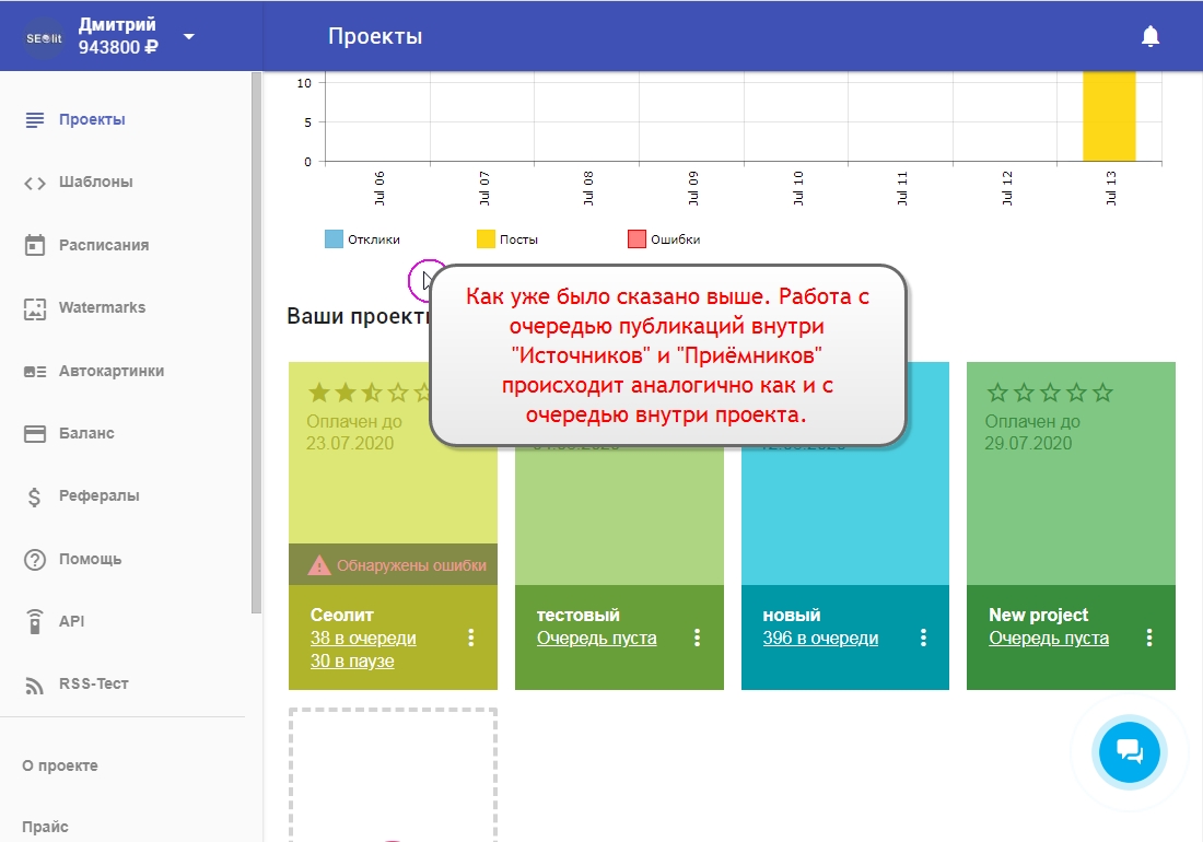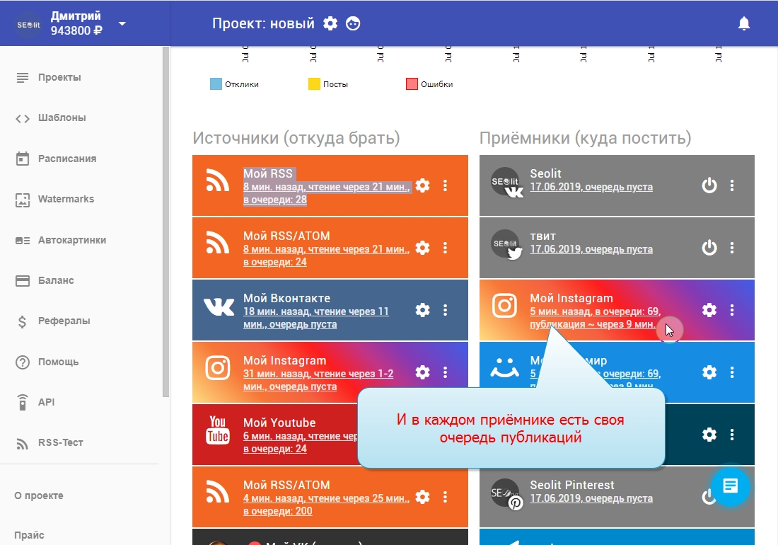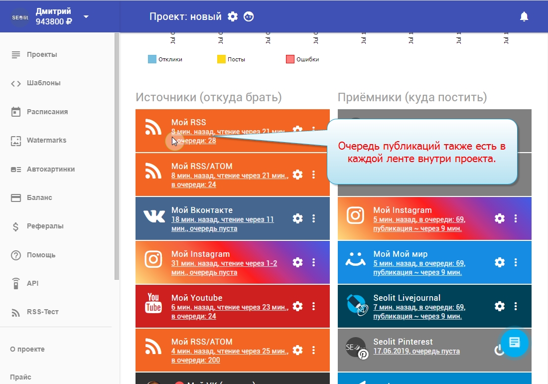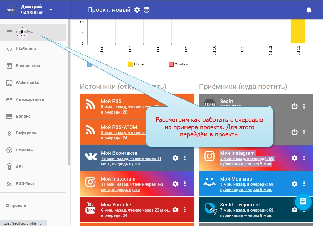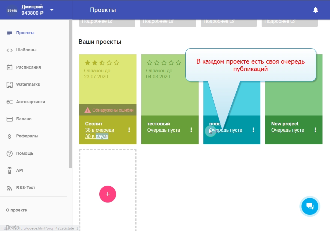 3. Внизу каждого проекта есть "Очередь публикации постов".