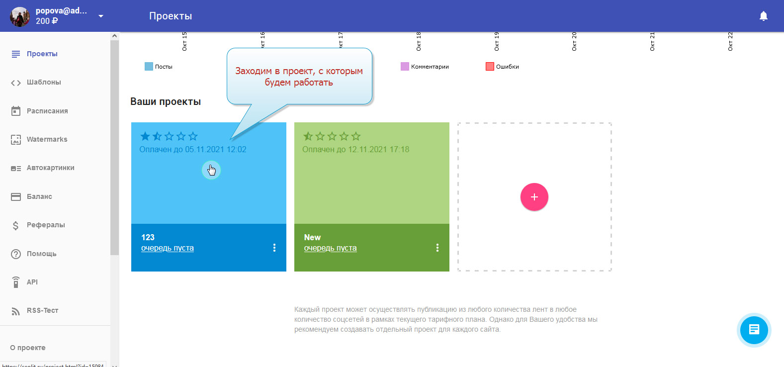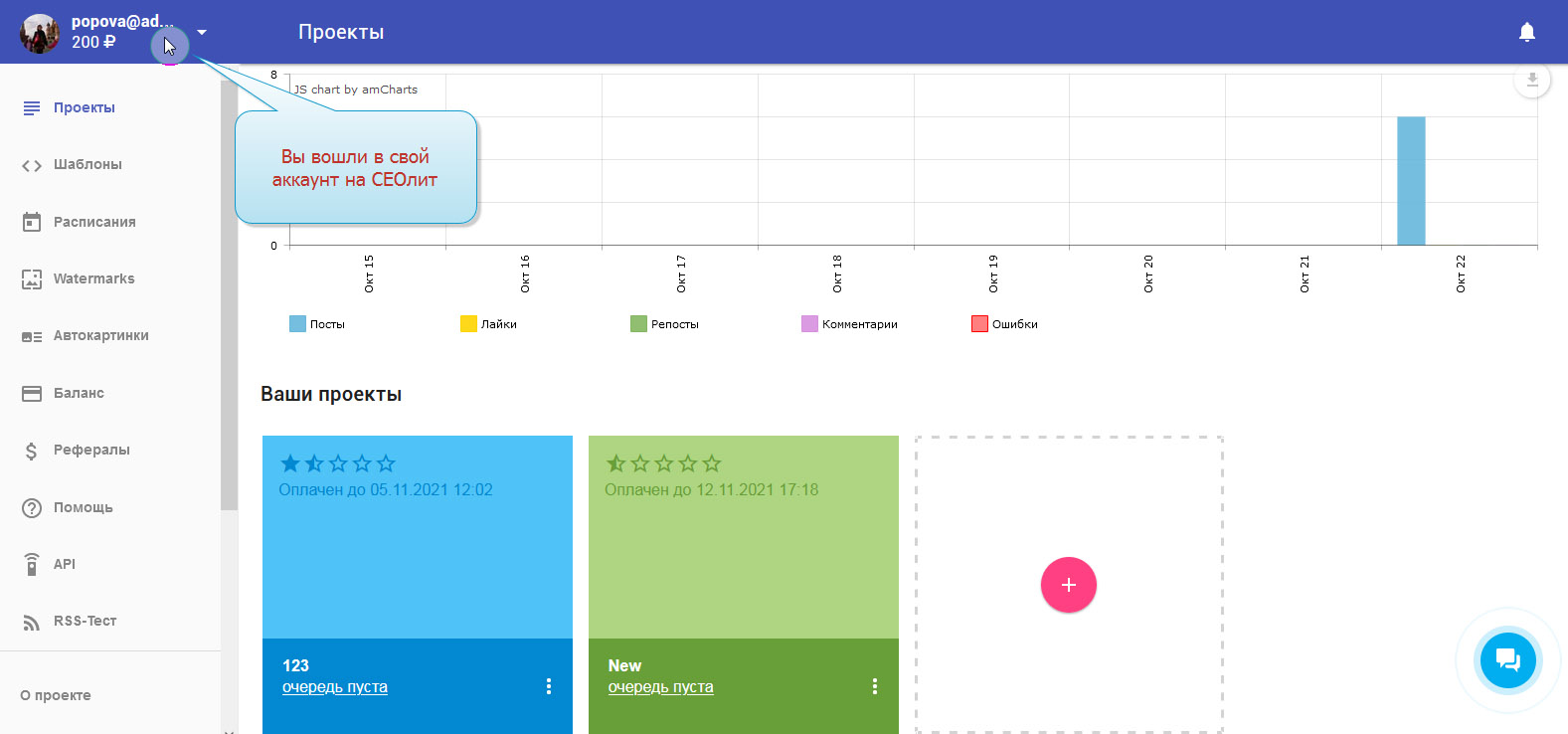 1. Вы вошли в свой профиль в Сеолите и находитесь на стадии выбора проекта.