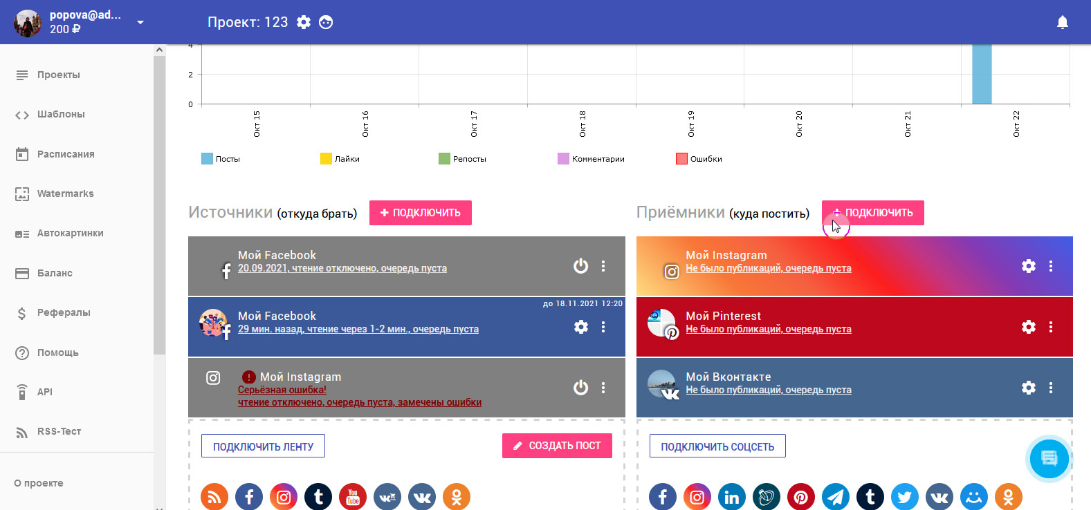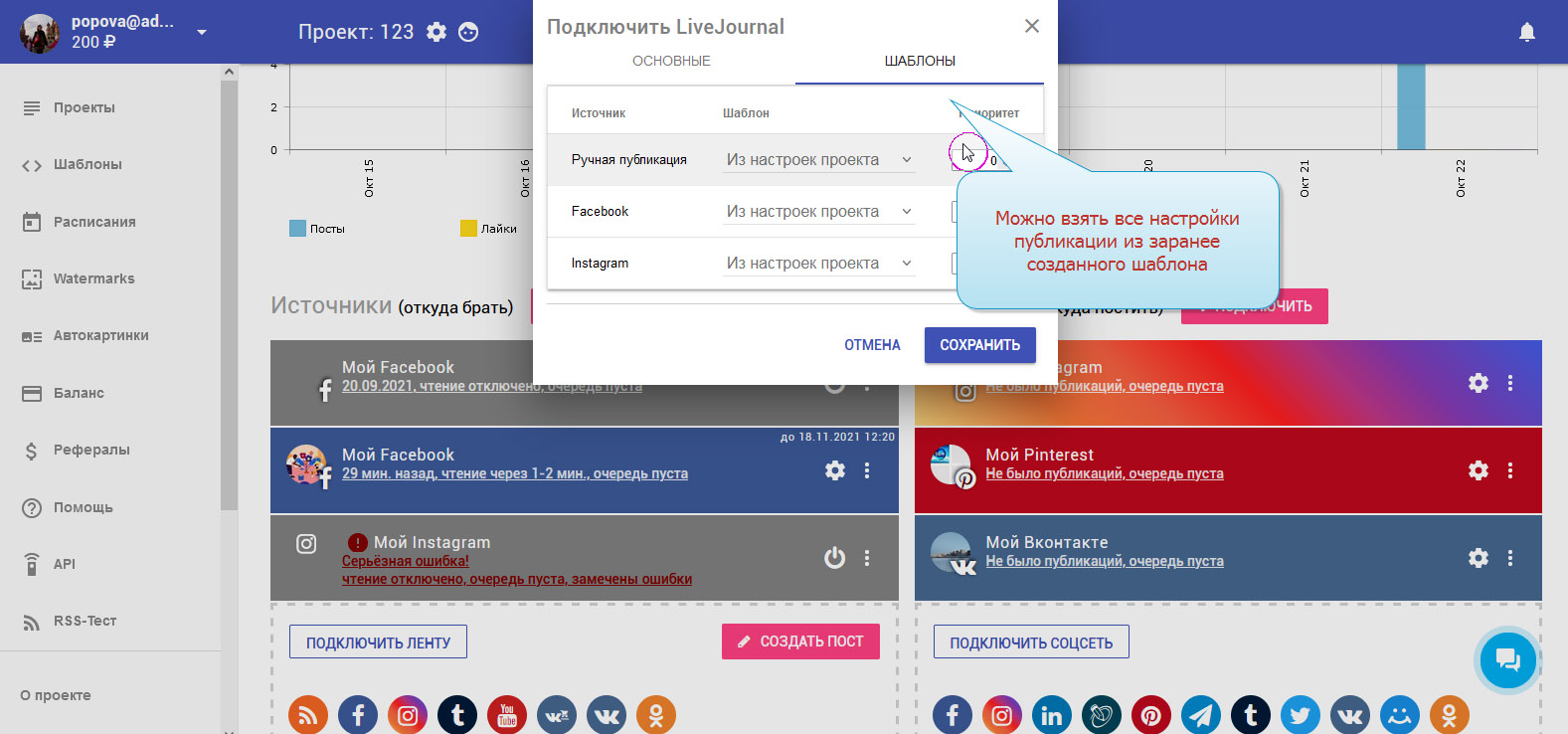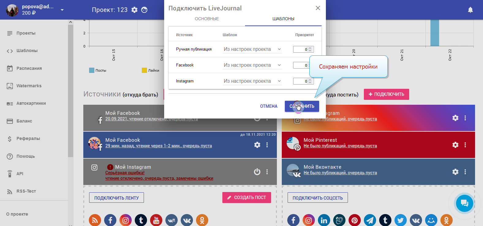 11. LiveJournal подключён. В колонке с приёмниками вы можете видеть ваш добавленный аккаунт.