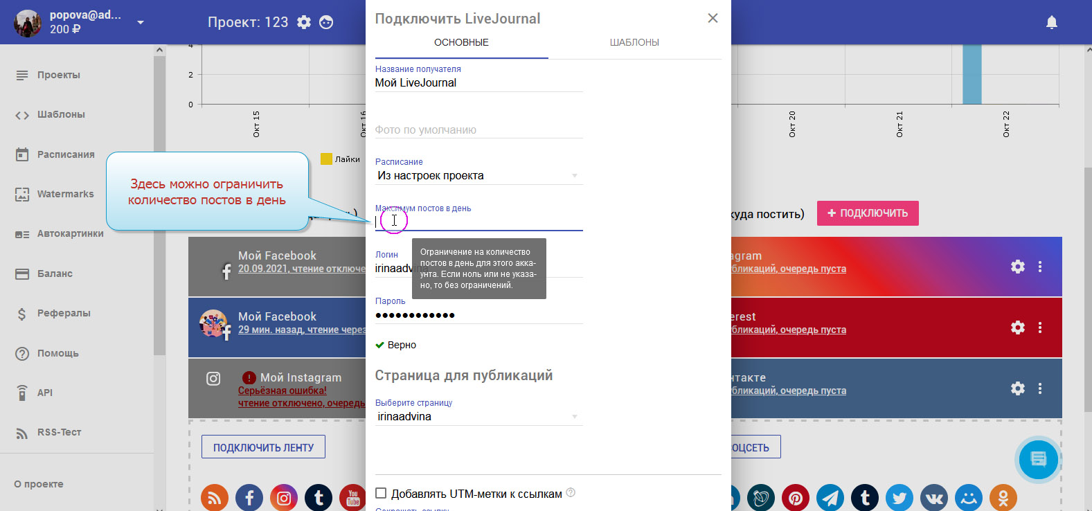 7. Можем ограничить количество постов в день.