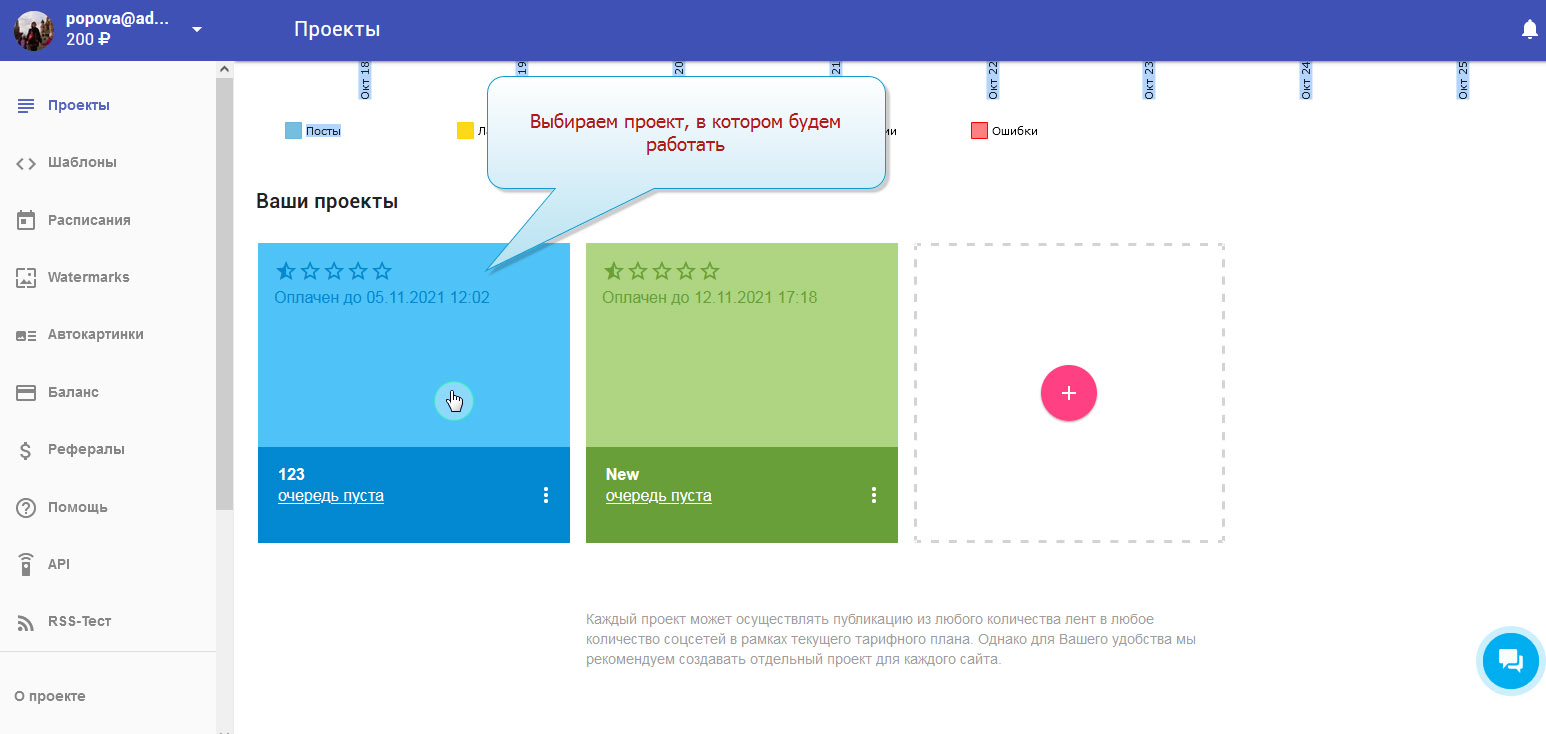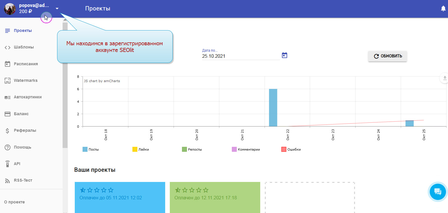 1. Вы вошли в свой профиль в Сеолите и находитесь на стадии выбора проекта.