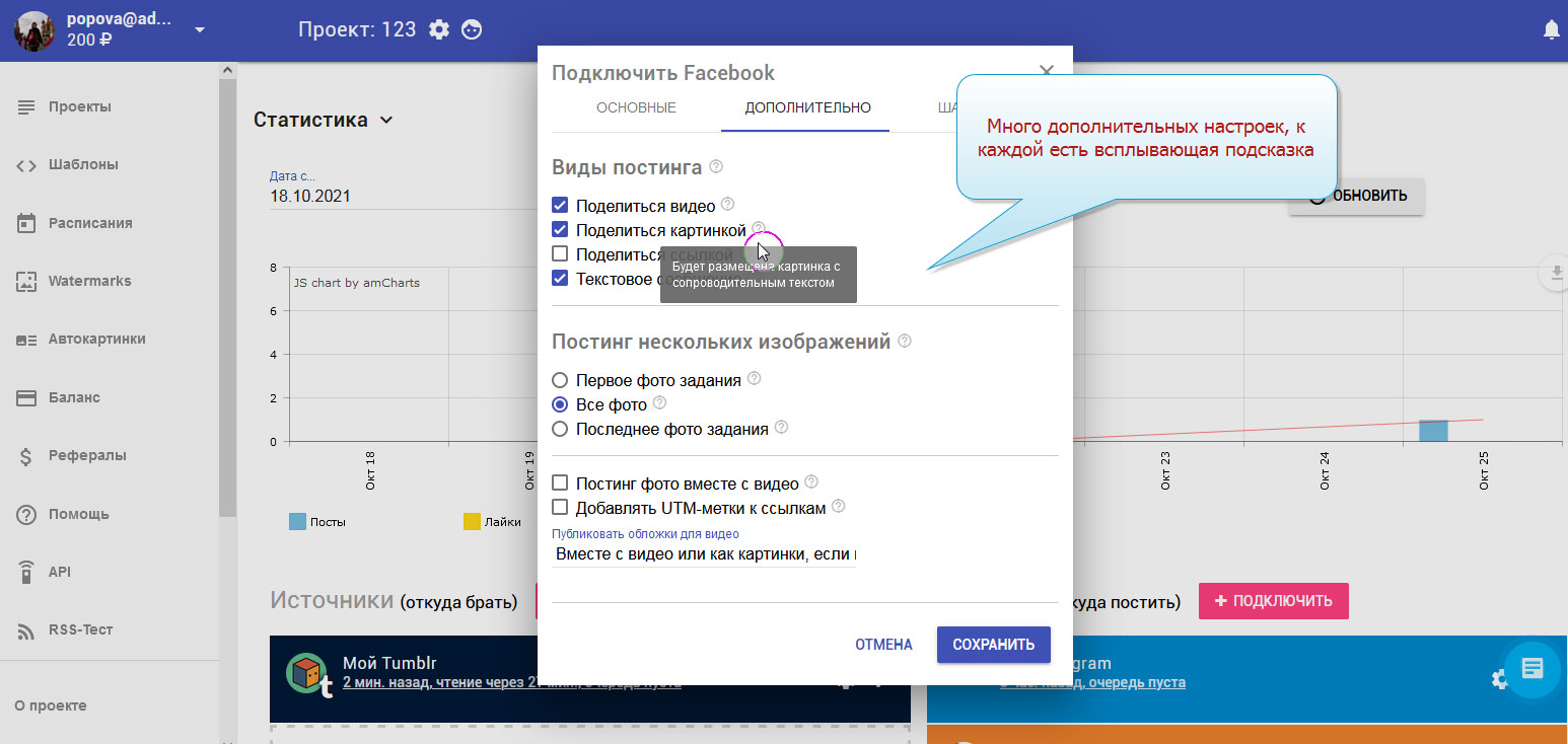 20. Есть много дополнительных настроек публикации, к каждой из них всплывает подсказка.