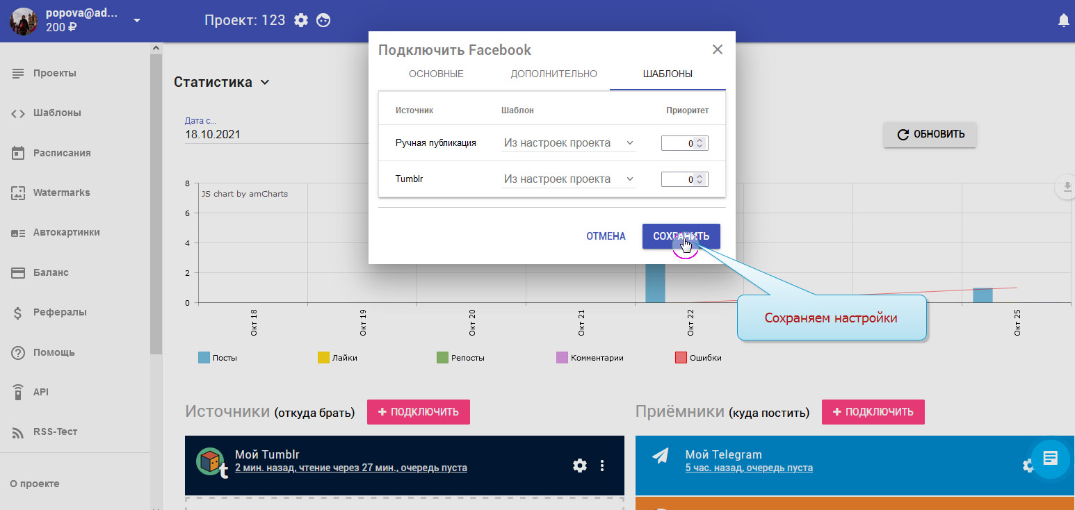 22. Сохраняем настройки. В случае необходимости их всегда можно изменить. См. инструкцию по настройке постинга в FB.