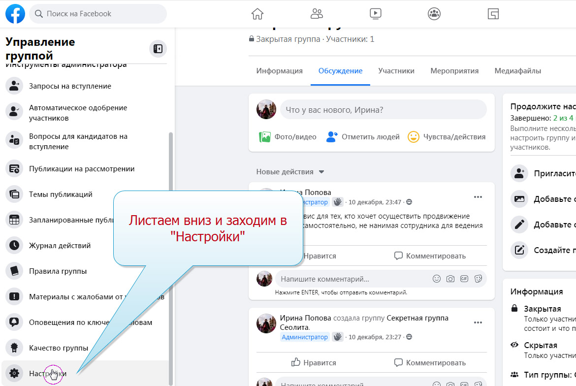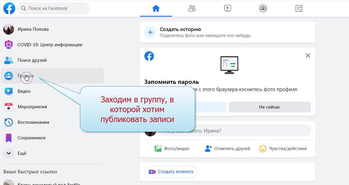 12. Зайдём в группу Facebook, в которую собираемся публиковать записи.