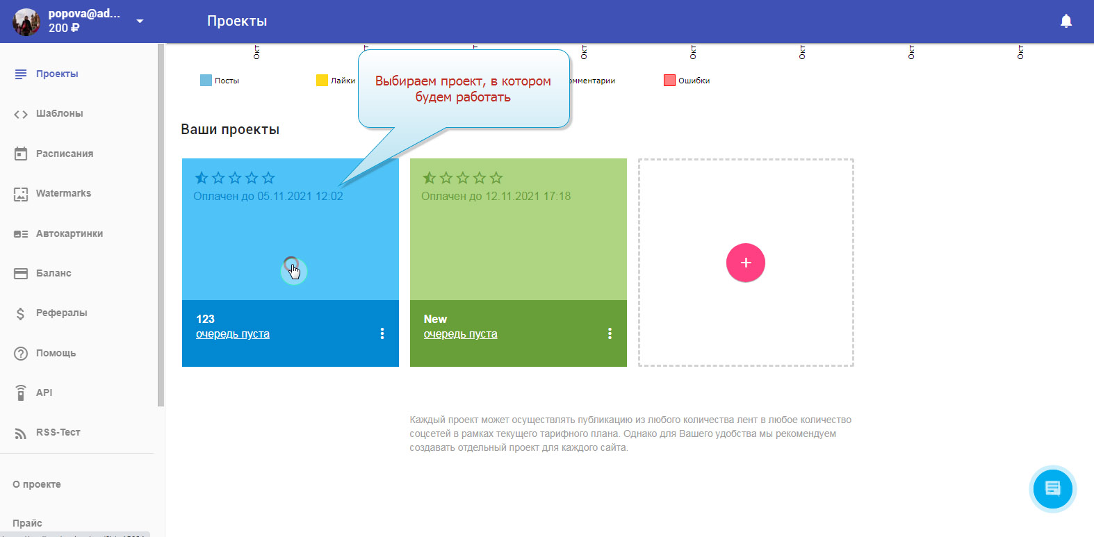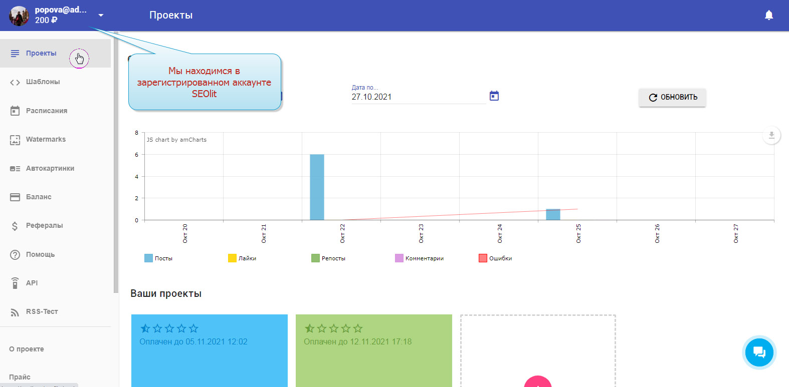 1. Вы вошли в свой профиль в Сеолите и находитесь на стадии выбора проекта.
