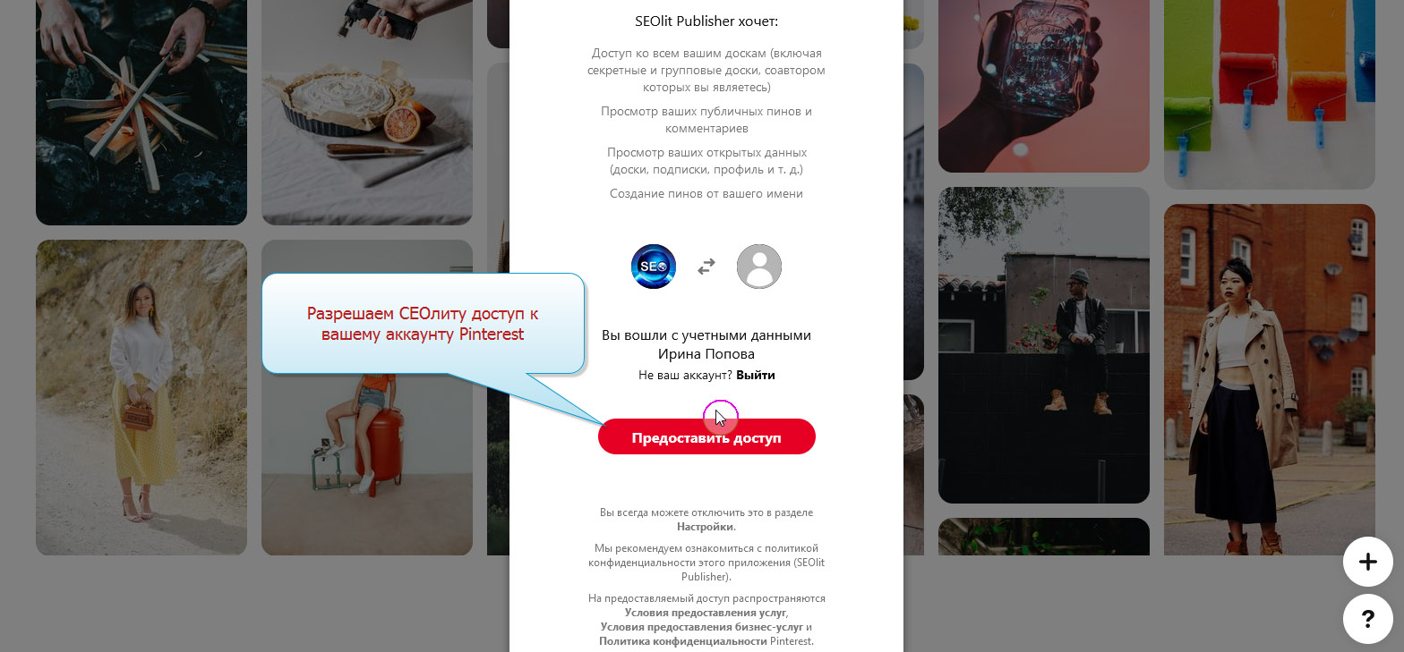 6. Разрешаем СЕОлиту доступ к вашему Pinterest.