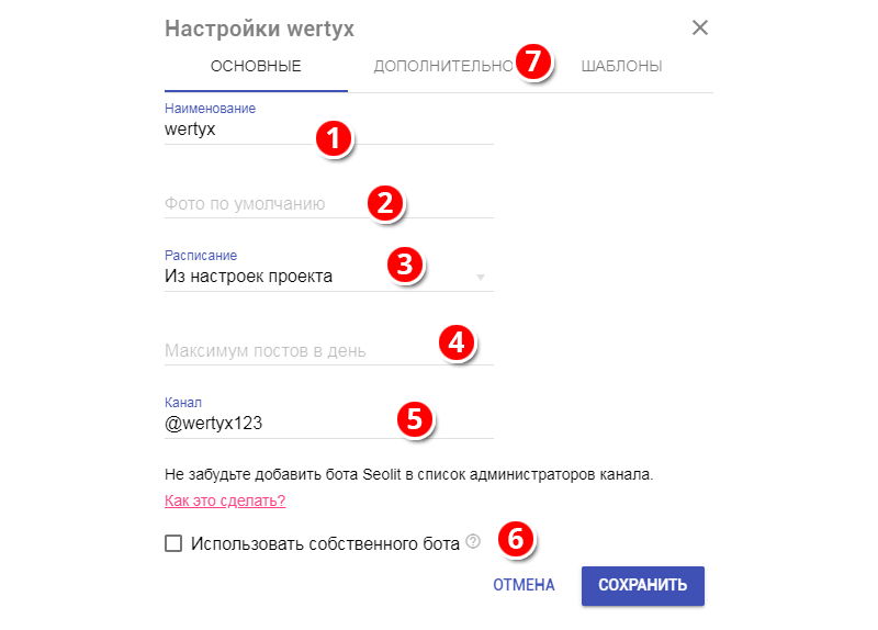 6. Возможность использовать собственного бота для постинга. Это удобнее и безопаснее. Нажмите галочку, появится поле ввода, введите в поле токен вашего бота.