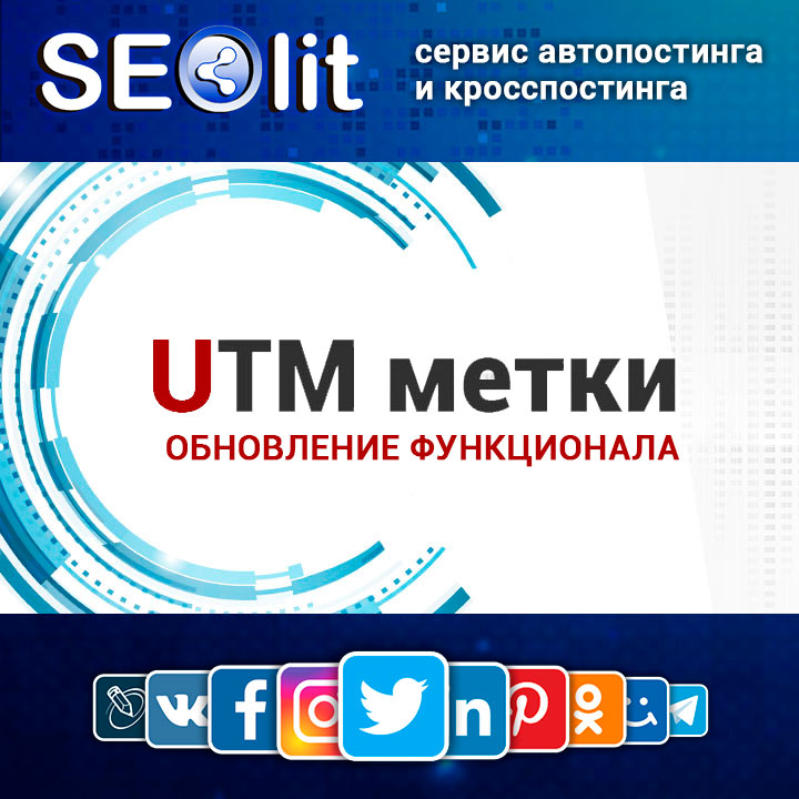 Разметка выполняется следующим образом: utm_source=seolit-{соцсеть}&utm_medium=autopost&utm_campaign=project_{id проекта}&utm_content=post_{id задания}. Таким образом в отчёте посещаемости по UTM-меткам вы можете отследить посещения из разных соцсетей, по постам разных проектов, при желании - даже по отдельным постам.