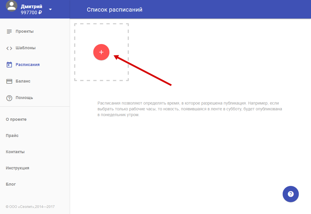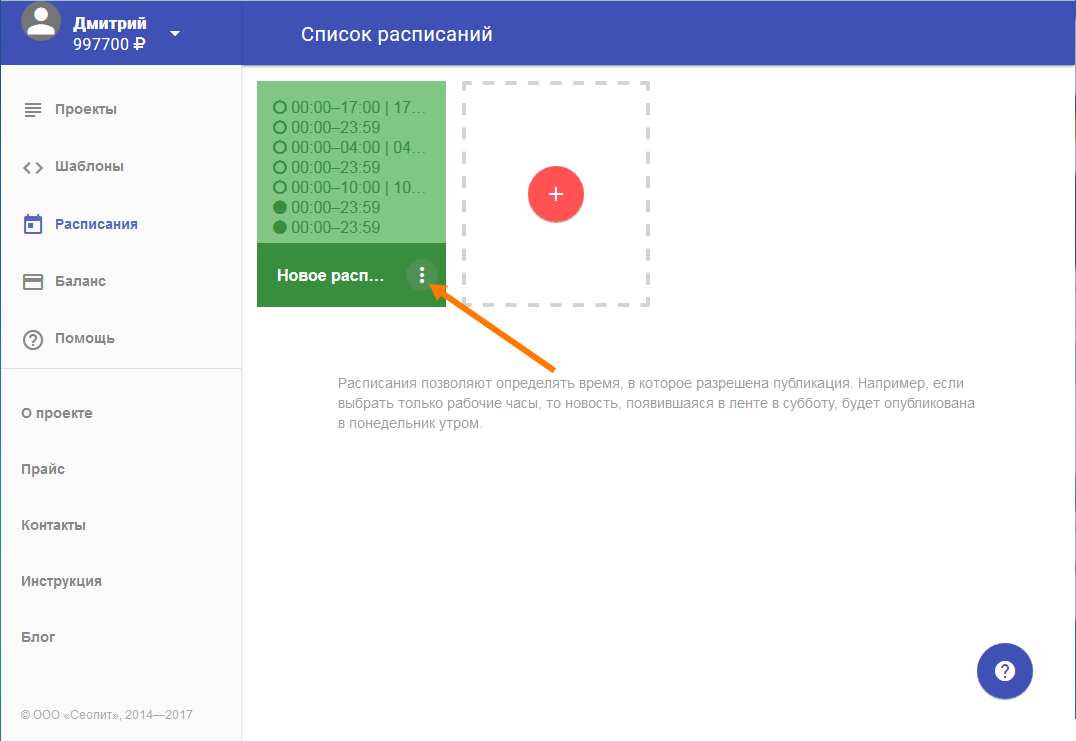 Созданное расписание необходимо привязать к аккаунту или проекту, и об этом - на следующей странице помощи.