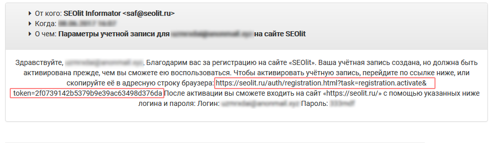 5. На почту, указанную Вами, придёт письмо с активацией. Чтобы активировать аккаунт, нужно скопировать ссылку из письма и вставить в адресную строку браузера, либо просто перейти по ней.