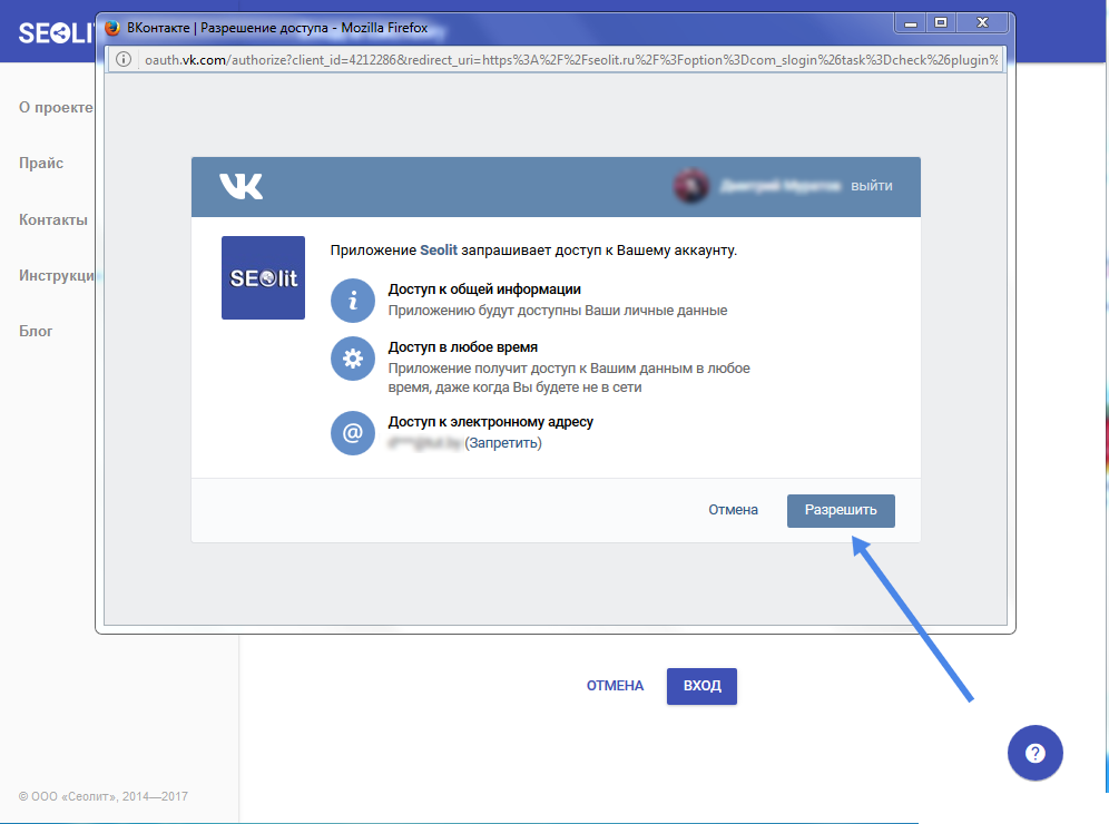 10. Разрешить доступ к информации - нажать "Разрешить".