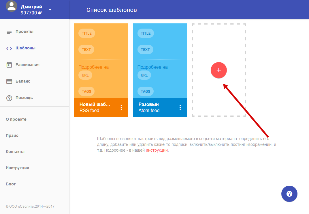 Новые шаблоны можно создать из меню слева "Шаблоны"