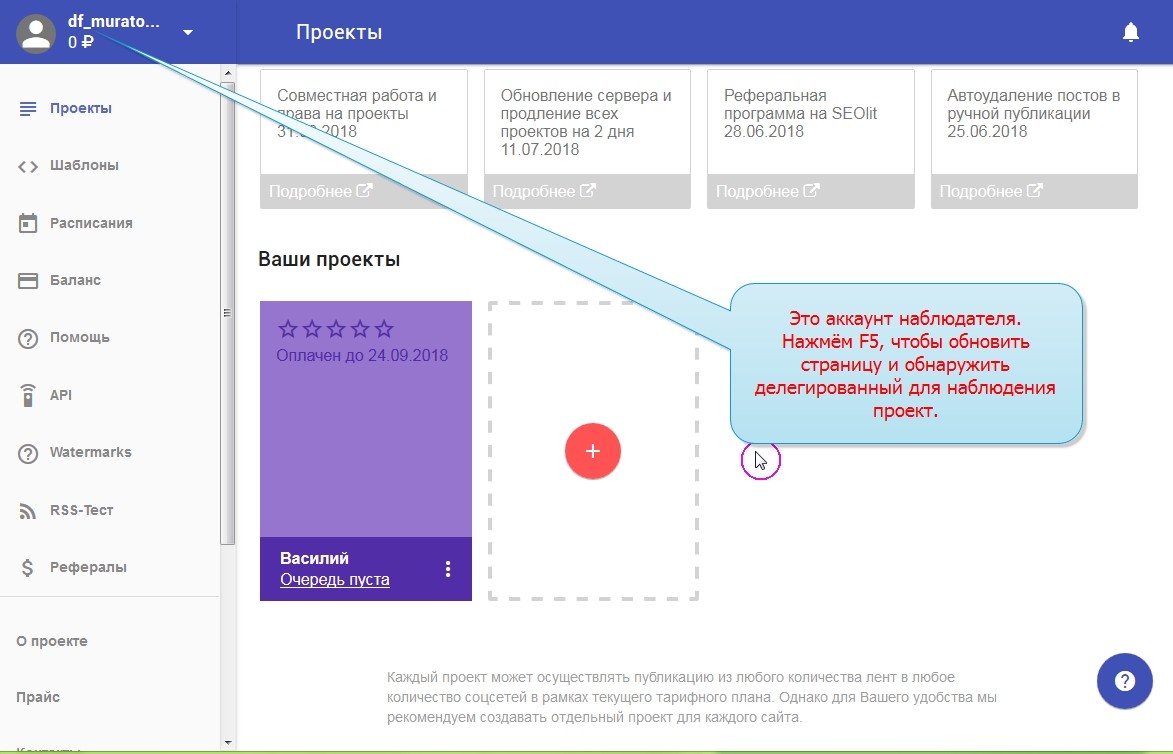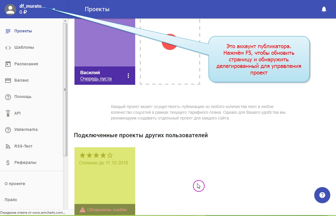 21. Перейдём в аккаунт публикатора и нажмём F5, чтобы обновить изменения.