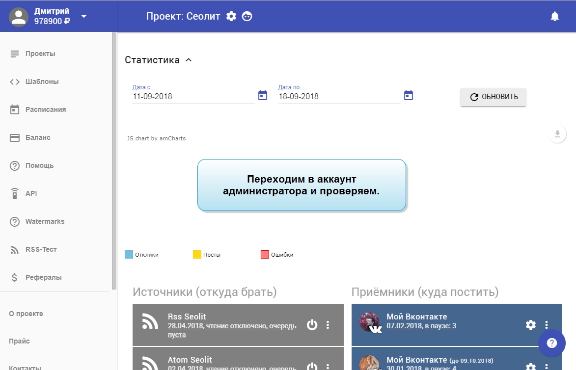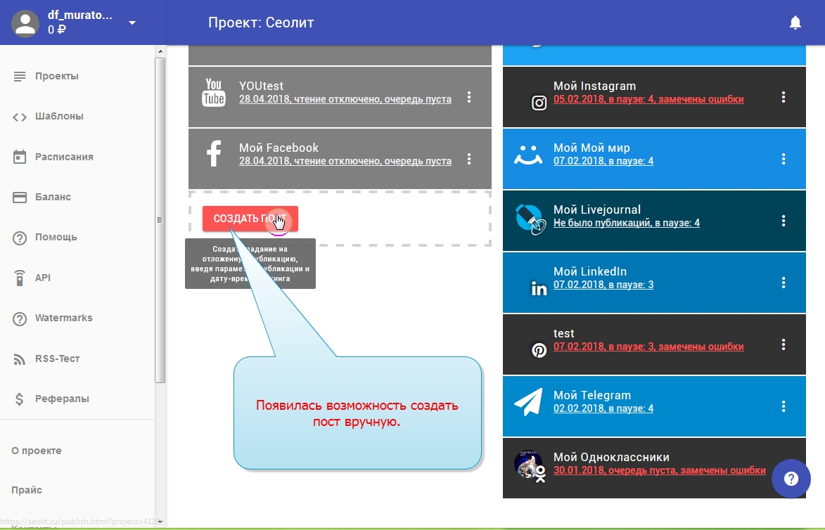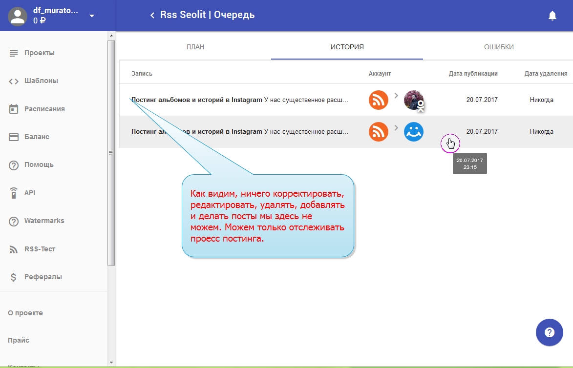 17. Как видим, ничего корректировать, редактировать, удалять, добавлять и делать посты мы здесь не можем. Можем только отслеживать проесс постинга..