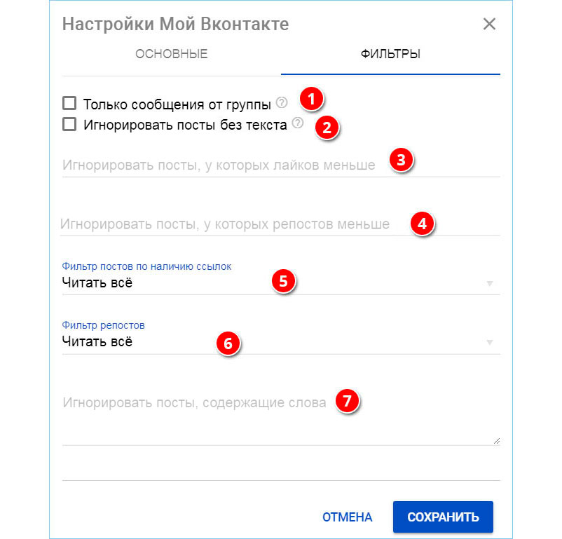 2. Этот чекбокс позволит вам игнорировать публикации, в которых нет текста.